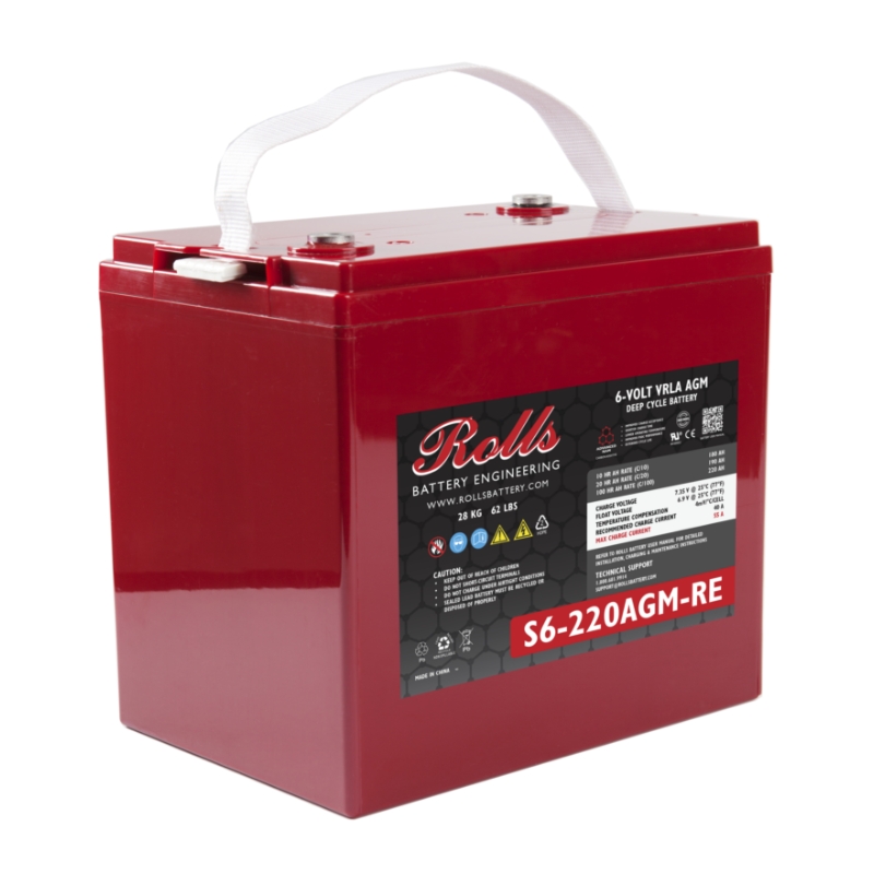 La batería de ciclo profundo Rolls de 6V, modelo S6-220AGM-RE y con tecnología AGM, es ideal para aplicaciones de tracción, como energía renovable, respaldo, aplicaciones marinas y recreativas, destacándose por su construcción sellada, bajo mantenimiento y rendimiento estable en ciclos de descarga frecuentes.